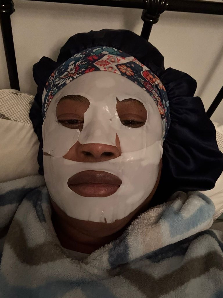 I opened the package; it reminded me of cold jelly coconut. I put it on my face and lay on my bed at 02:30 AM listening to music whilst it set. I took a photo to mark the occasion; even my phone couldn’t recognise me when I attempted Face ID.